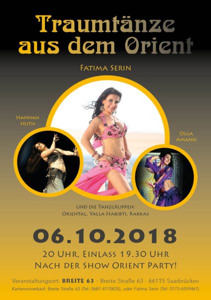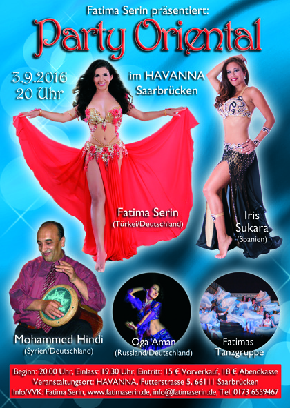 Fatima Serin ist seit Jahren erfolgreich als orientalische Tänzerin. Ihre Ausdrucksstärke und ihr Temperament, ihre Eleganz und Perfektion und ihr sehr femininer Tanzstil hinterlassen stets ein begeistertes Publikum. Dieses außergewöhnliche Erlebnis wird noch verstärkt durch die Einzigartigkeit ihrer traumhaften Kostüme aus der Türkei und Ägypten.